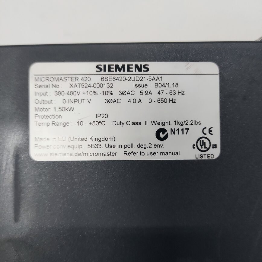 SIEMENS MICROMASTER 420 – 6SE6420-2UD21-5AA1 – 6SE6 420-2UD21-5AA1 – INVERTER MOTOR