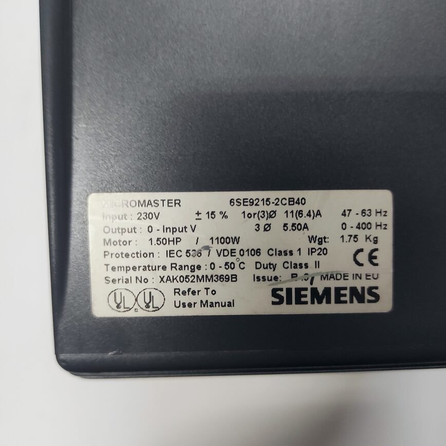 Sé el primero en valorar “SIEMENS MICROMASTER 6SE9215-2CB40 – 6SE9 215-2CB40 – INVERTER MOTOR”